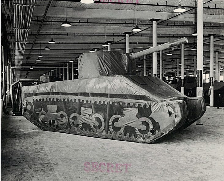 But it was a “Ghost Army” unit. Hundreds of vehicles and weapons were inflatable or constructed of wood and canvas, and the most critical component was the 23rd Special Headquarters, made up of set designers, artists, and sound engineers who created the illusion of a well-equipped base and the sounds of bustling preparations for combat.